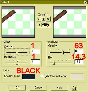 Apply the Cutout again but change the Vertical and Horizontal settings to -1. Deselect.